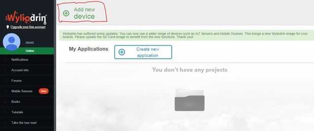 - Una vez que inicie sesión en su cuenta de agregar una nueva junta a su cuenta de Wyliodrin.