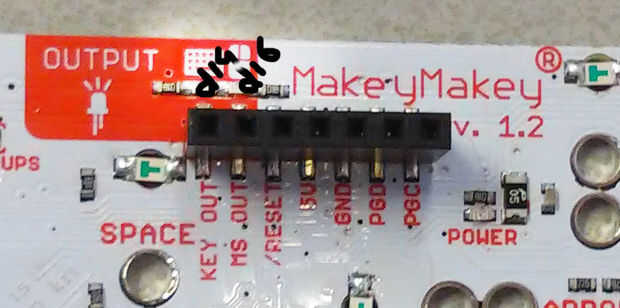 D14 está conectado a las entradas de teclado. Así que si se pulsa un botón del teclado MaKey MaKey enviará un 1 a D14. Si ninguno de los botones es presionado enviará un 0. D16 está conectado a las entradas de ratón del mismo modo.