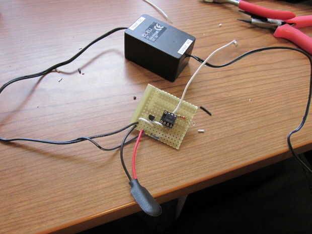 Un diagrama de dibujos animados se proporciona a continuación. Soldado las entradas de la C.C. del inversor a la resistencia, triac, clavija, conector de fuente de alimentación y dos cables de puente: uno para el lado negativo del LilyPad y uno para la cinta de cobre en EL alambre.
