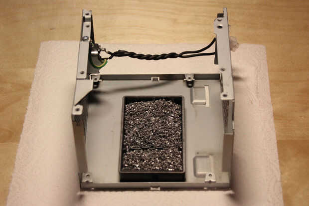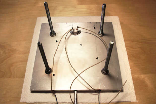 Para estabilizar la placa de calentamiento, puede pegar una pequeña cubierta plástica en la placa de soporte de metal y lo llenan de plomo.