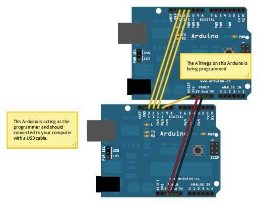 Programación AVR con Arduino como ISP sin gestor de arranque y cristal externo