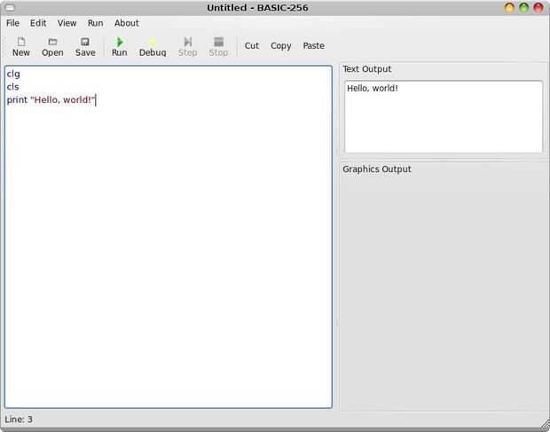 Inicio BASIC-256 (para los usuarios de Ubuntu: en aplicaciones / educación.