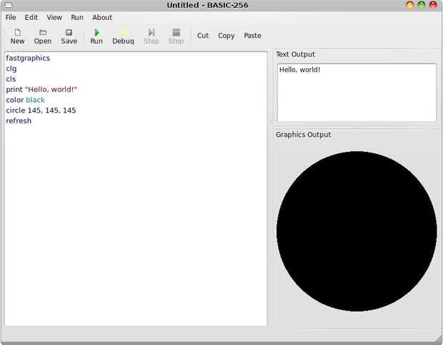 Ejecútalo, y ves un gran círculo en la ventana gráfica.