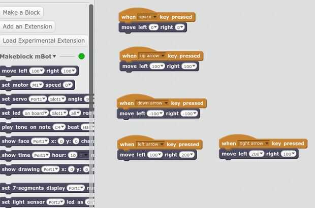 Programación con Scratch X de mBot Makeblock (3 / 4 paso)