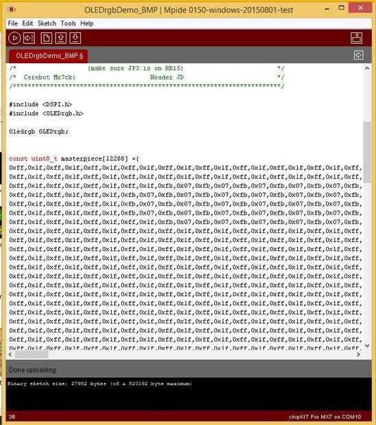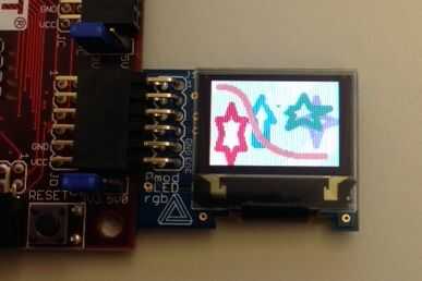 Haga clic en subir para programar la placa. Finalmente debe ver tu obra maestra en el PmodOLEDrgb!