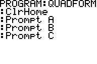 A continuación, le pediremos la variable A. Esto se hace presionando PRGM, luego derecho a I/O de desplazamiento y presione 2. Esto trae para arriba el comando Prompt. A continuación, tipo un pulsando Alpha y luego matemáticas, usando Alpha como la clave del 2 º .