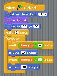 Si vas a los sprites de guitarra y las manos te darás cuenta que todos los programas incluyen un movimiento. Como ves cuando juegas el juego, la guitarra y las manos sólo moverse. No hay ningún comando de voz o "cuando presiona la tecla" en esos programas.