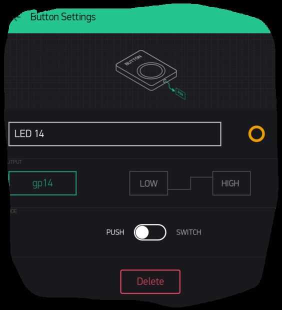 Hasta aquí la configuración de página de Blynk comenzó con un pulsador simple encender/apagar un LED.