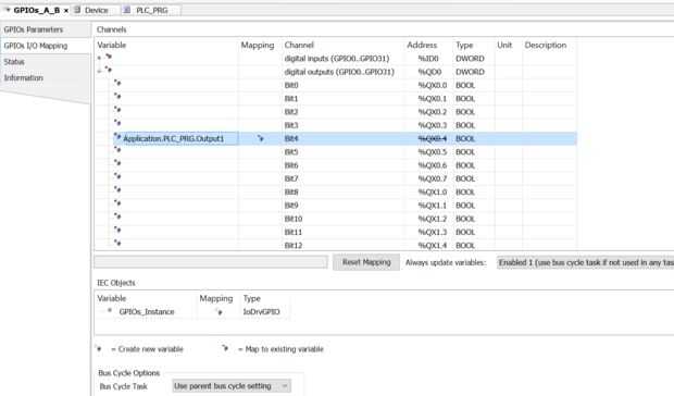 -Ahora seleccione la pestaña "GPIOs entrada-salida traz", expandir th eouput selección y haga doble clic en la casilla variable de "Bit4" (para el Pin4 en el GPIO). (ver imagen) - haga clic en el "..." que ha aparecido ahora en el cuadro. (ver imagen)