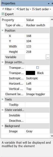 -Ahora, haga clic en el interruptor y la pantalla de la caja de herramientas debe haber cambiado a una pantalla de propiedades, en esta pantalla doble click en la casilla junto a "Variable" (ver imagen). Haga clic en el "..." que aparece.