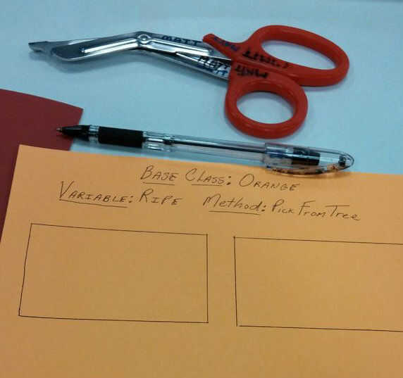 Método de enseñanza/aprendizaje para los estudiantes nuevos a la programación orientada a objetos.Esto es una manera para que puedan visualizar y ver el proceso de creación de objetos de las clases.Partes:1. tijeras (cualquier tipo hará).2. trozo de