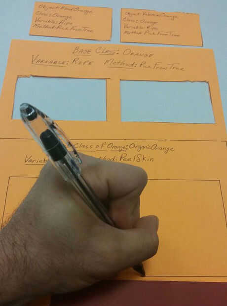 Método de enseñanza/aprendizaje para los estudiantes nuevos a la programación orientada a objetos.Esto es una manera para que puedan visualizar y ver el proceso de creación de objetos de las clases.Partes:1. tijeras (cualquier tipo hará).2. trozo de
