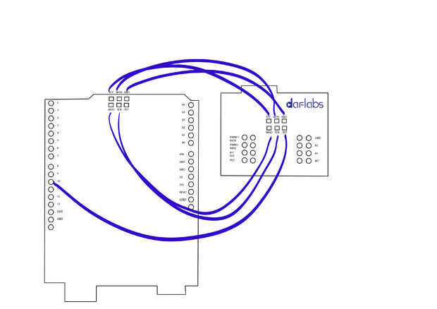 Primero debe conectar el Arduino Uno a la TinyBoard. Las conexiones se muestran en la imagen.