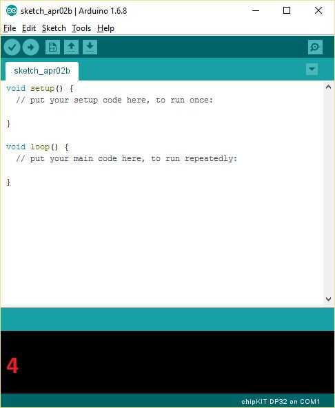 4. Haga clic en el icono IDE, y debe aparecer la ventana en la foto (con un rojo "4" en la parte inferior izquierda).