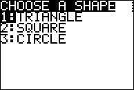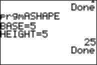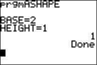 1. ejecutar el programa y prueba la primera opción, triángulo. Utilizar números fácil para que usted sepa la respuesta es correcta (por ejemplo, de la Base = 2, altura = 1, (. 5 * 2 * 1) = 1).