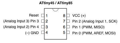 En mi proyecto he añadido un indicador LED en el pin 9 del Arduino que muestra que el programador está funcionando correctamente y un reset tacto interruptor para el ATtiny85.