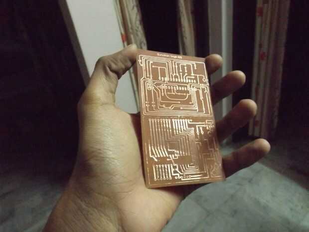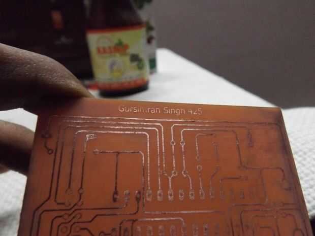 Tomar hacia fuera de la placa de cobre revestido de la solución y luego lavado con agua y vierta algunas acetona a bordo quitar el toner, verías un PCB muy bien grabado.