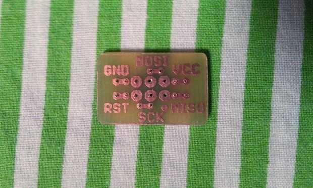 Primero soldar los 6 vias en el PCB que están proporcionando la conexión entre las capas superior e inferior. Poner un alambre pelado fino a través de las vias, suelda en ambos extremos y cortar el alambre sobrante.