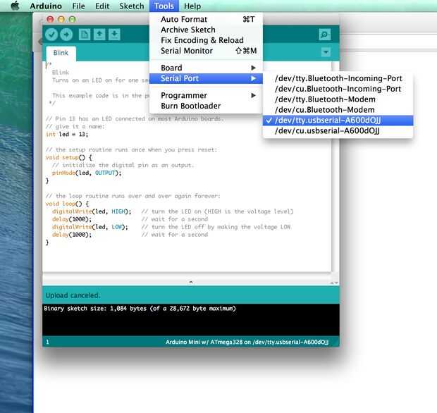 Una forma rápida de comprobar si el programa está cargando es una mirada sobre esas gloriosas luces TX y RX en el FTDI, van ser parpadear muy rápido, si todo está bien. Lo que significa que la Junta Directiva y su equipo están hablando entre sí.