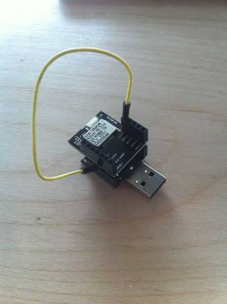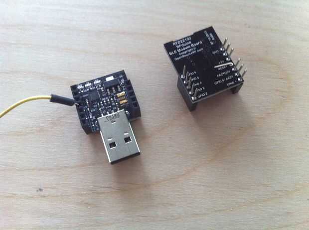 Para programar el objeto Arduino UNO, tenemos que asegúrese de que no tratamos de programar el HOST RFduino. Ambos utilizan el mismo avrdude programación protocolo, por lo que debemos desactivar nuestra capacidad para programar el RFduino. Para esto, suavemente soy doblar el pin RESET en el módulo de radio RFduino DIP y usando un jumper del pin USB RFduino escudo RST (salida DTR FTDI) para conectarse a GPIO6 en el módulo. Así, puedo siempre conectar el puente a RFduino RESET si quiero actualizar el firmware HOST, luego volver a GPIO6 si quiero que la opción de programar el destino de UNO por aire.