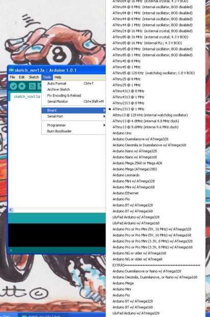 Después de éxito con configurar el circuito entonces los archivos ATtiny2313 y confirmados están disponibles en el IDE deberá establecer a tu Arduino para la programación.