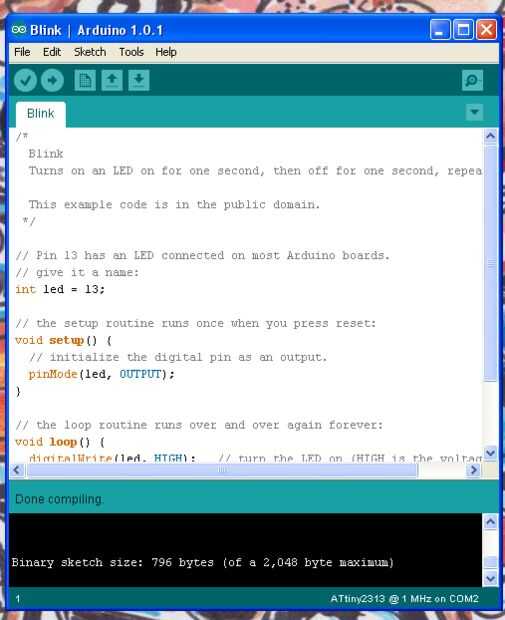 Si lo carga un abrir y cerrar del bosquejo y compilarlo. Si todo fue hecho correctamente en la parte inferior debe ser la norma "hecho recopilación".