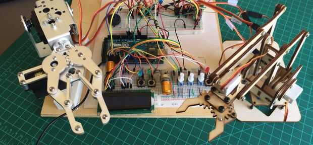 Necesitábamos una plataforma para probar nuestra nuevas MICILE / interfaz de usuario de Arduino. La mano del robot y el brazo parecían como algo lo suficientemente complejo como para dar realmente todo el concepto de un entrenamiento integral. El pro