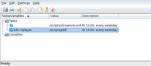 El segundo script te hecho, llamado 'pkill' es lo que realmente termina mplayer y permite el primer guión a seguir. Usted tendrá que configurar otra tarea de cron para ejecutar ese script así. Para mi ejemplo, termino con dos trabajos de KCron. (ver imagen 2)