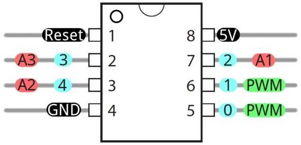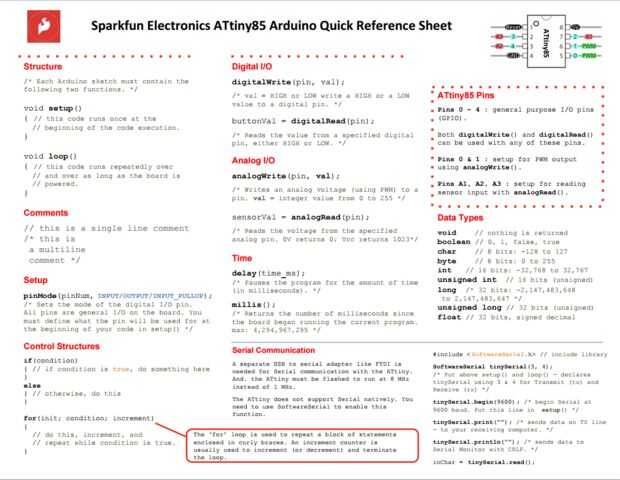 No todas las funciones en Arduino se transportan a los más pequeños chips ATtiny. Sparkfun proporciona una buena chuleta para algunas funciones básicas y está conectada por encima.