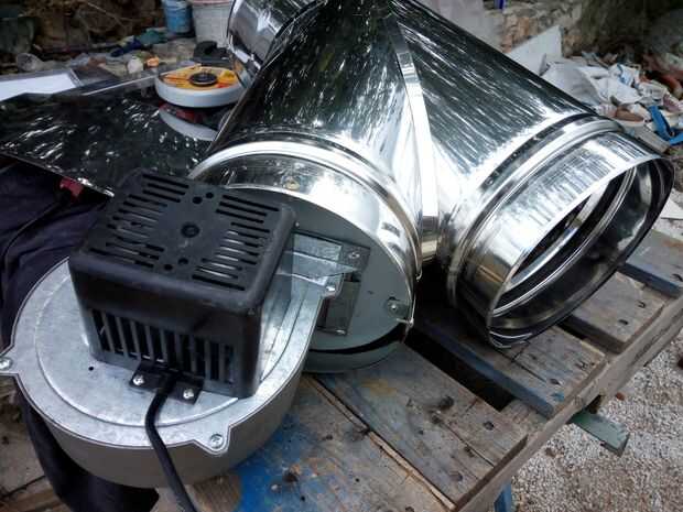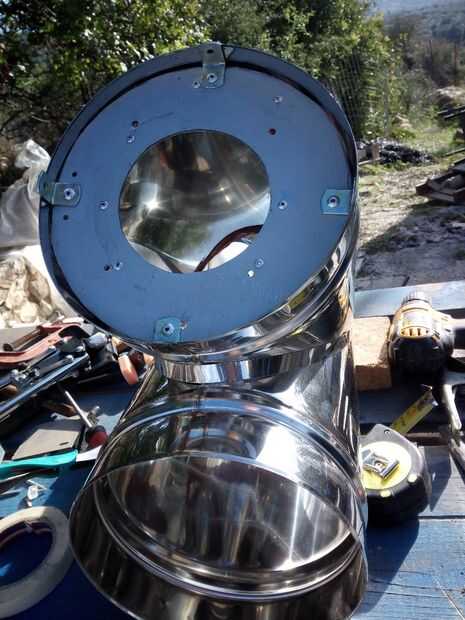 Aquí se puede ver la sección de acero inoxidable con un brazo de la rama, en mi caso es 20cm de diámetro ambos principal y sucursal.