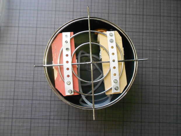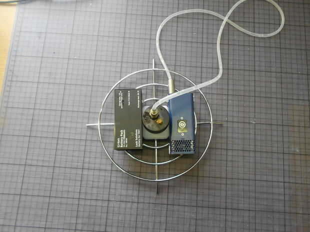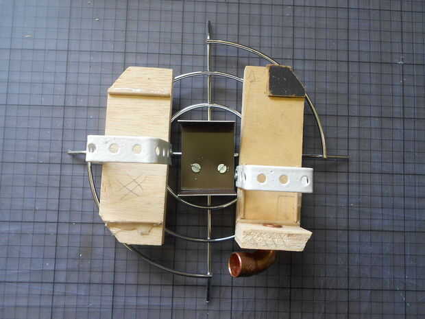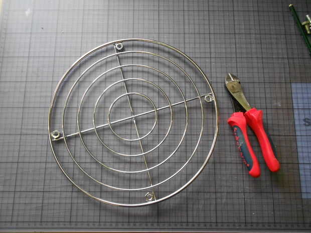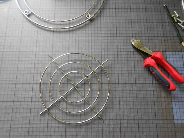 Mientras estaban en consiguió deshacerse de las piezas de exceso de la cesta de plantas (las ruedas y los dos aros exteriores) y doblado hacia abajo las puntas que sobresalen de la Cruz para conseguir unos pies a la red.