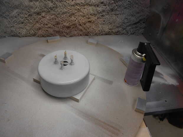 Después de eso me quité la sombra otra vez y dio el zócalo/pot varias capas de pintura blanca.