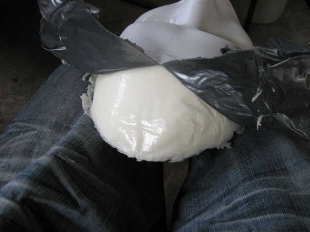 - Extienda la mezcla resultante en todas las cavidades profundas como la nariz, alrededor de la boca y ojos y cualquier detalle es necesario. El relleno en el resto del molde. Ir rápido como este instala absolutamente firme en menos luego de 5 minutos.