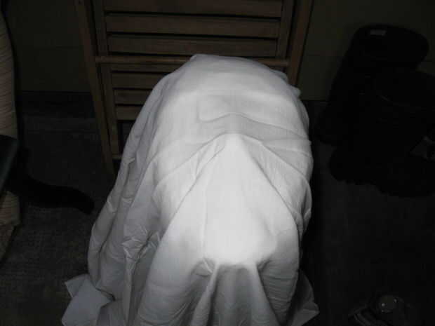 • Con la cabeza de la cara o maniquí de silicona montada sobre el trípode, coloque la hoja sobre la máscara, centrado en el centro de la hoja.