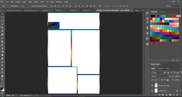 Para este paso importar tus fotos en la propagación. Asegúrese de que están por debajo de todas las capas de cuadrados, que forma si van fuera de las plazas son no superponiendo los bordes.