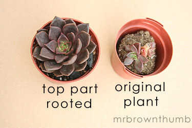 Después de un par de semanas se trata de sus nuevas plantas como se ven. La olla a la derecha es el "tocón" nos quedamos con después de que la parte superior de la planta y todas las hojas inferiores. Si usted mira de cerca está creciendo dos nuevas plantas fuera de los lados del tallo.