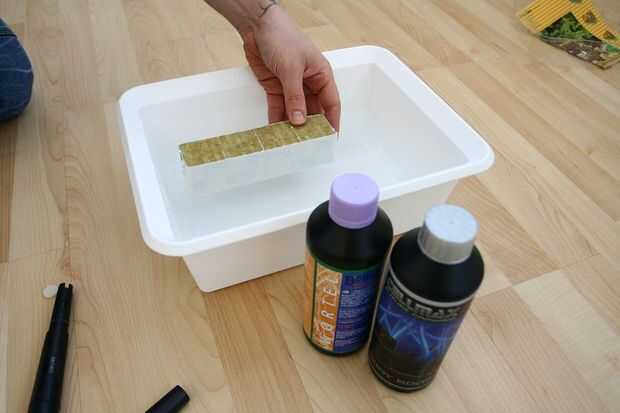 Propagación de la hidroponía en el cubo de lana de roca (3 / 9 paso)