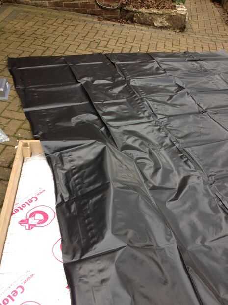 Cortar la lámina de polietileno resistente a medida. He optado por una doble capa, pero que era probablemente innecesario.