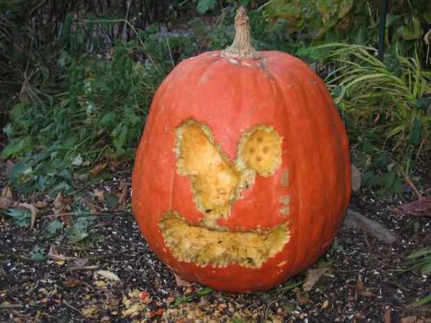 Las ardillas se eventualmente romperse a través de la carne en la calabaza y quitarle todas las semillas.