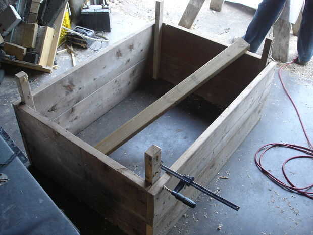 Dividir algunos de la 2 x 4 para apoyo de las esquinas de tu esqueleto recién construido bin.