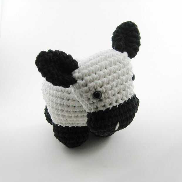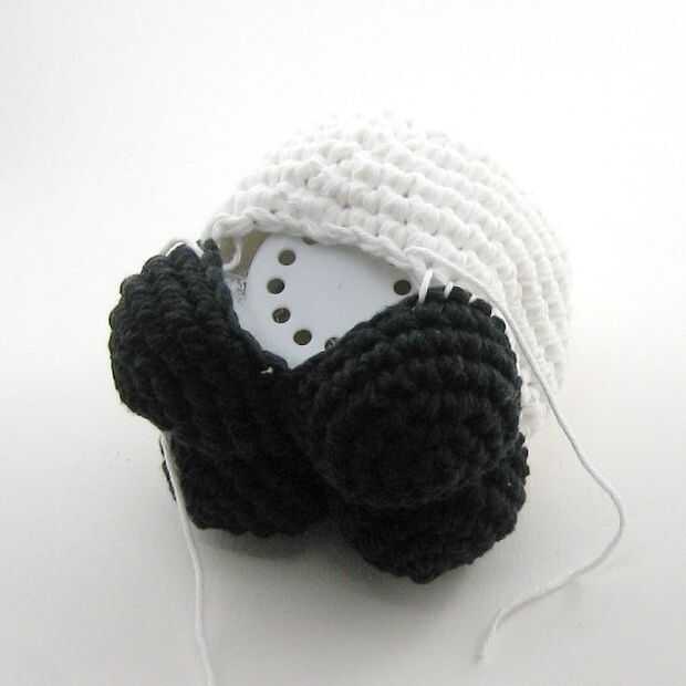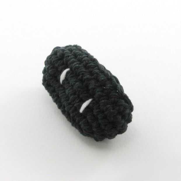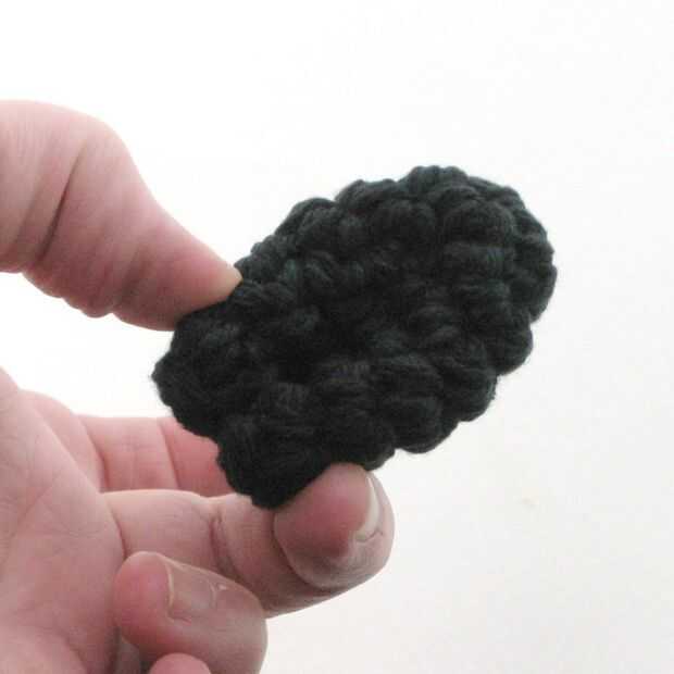Uno de los oídos, prensa plana y doblar la base por la mitad. Usando el hilado negro, coser la oreja a un lado de la parte superior de la cabeza. Repita para el segundo oído.