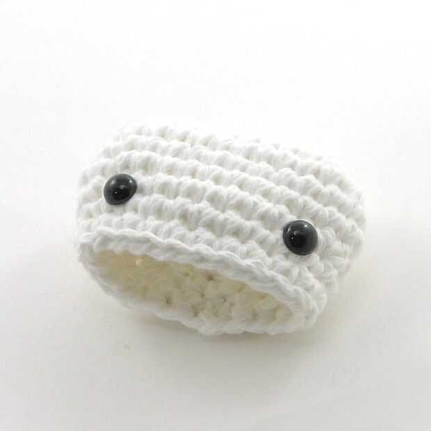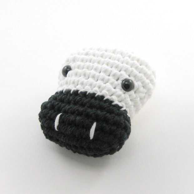 Uso de hilo blanco, coser la nariz a la nariz de la cabeza. Cada puntada es 2 filas de altura, con la parte superior de las filas de cada fosa nasal 2 del borde. Espacio de las fosas nasales unos 5 sts apartes.