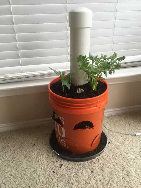 Este sistema es un jardín interior por compostaje. El propósito era poner poder cultivar verduras en casa y reducir residuos en compostaje los desechos de cocina. Dado que el jardín producirá alimentos es importante utilizar materiales sólo orgánicos tales como tierra, desechos de cocina y pegamento para el PVC/cubo común. Vota si te gusta, gracias!