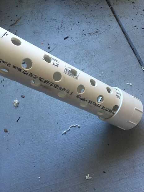 Usando la paleta 1" pedacito, perforaciones bastante en el pvc para permitir que el compost llegar a las raíces y fuera de suelo. Asegúrese de no perforar la parte superior del cubo ya que esto permitirá moscas a venir y el hedor del compost para escapar. Una vez finalizado este paso, sujete el tubo a la Asamblea de hembra adaptador/cubo utilizando el cemento de pvc.