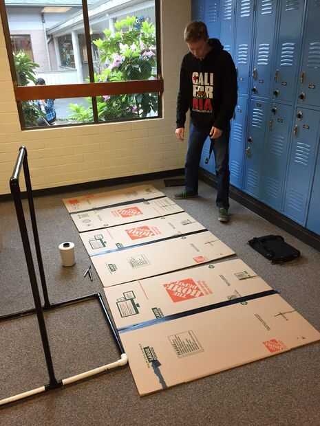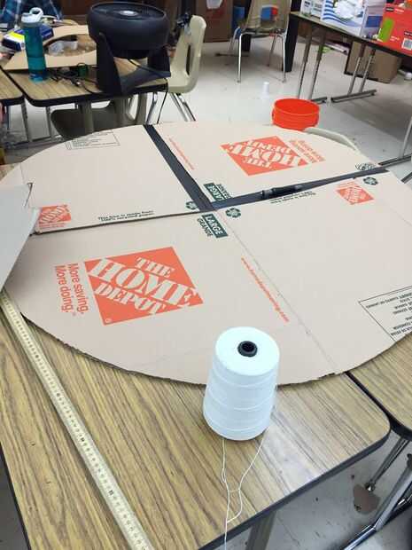 Con el cúter, cortar en por lo menos 2 círculos de cartón, el tamaño no importa, pero hicimos un círculo de al menos 56 pulgadas de diámetro para nuestro molino de viento, sólo construir dos circunferencias que tienen las mismas dimensiones. Después de eso, conducto círculos de cinta los dos juntos (de lado a lado, o desde el borde al centro del círculo) para hacer un círculo reforzado fuerte.