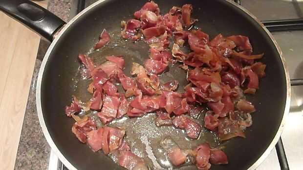 Cuadro 3. una vez que calienta el aceite, añadir el jamón serrano