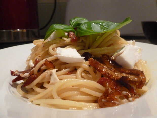 Mi querido compañero de trabajo me ayudó a hacer esta deliciosa receta! La llave de oro para el éxito es la caramelización de los higos. Esto hace que un buen aperitivo y pelado para el vino. Yo no soy un gran fan de higos frescos, ni queso de cabra,