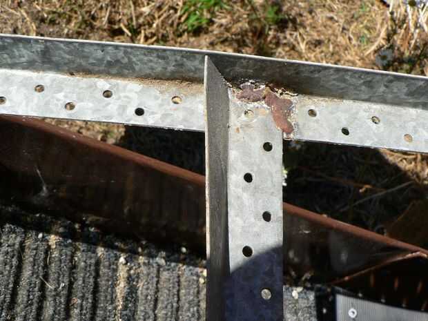 Después de marcar sus posiciones, I mig soldó con autógena los travesaños sobre los rieles de lado. No es una gran idea para soldar metal galvanizado pero hice estas soldaduras tachuela pequeña en longitud de los brazos al aire libre por lo que no es demasiado malo.