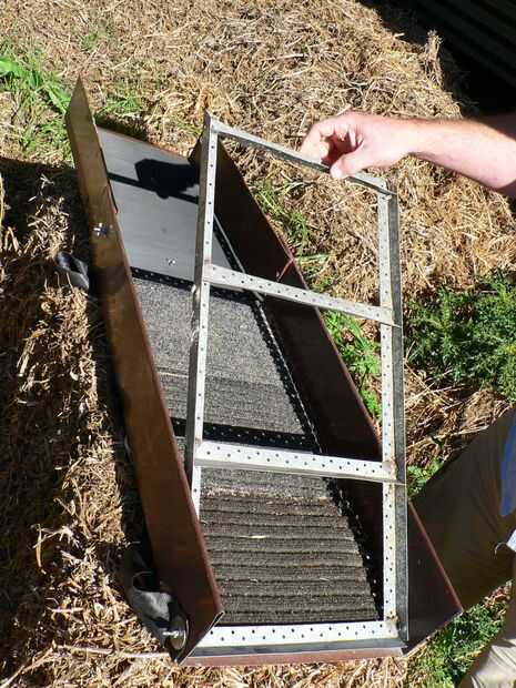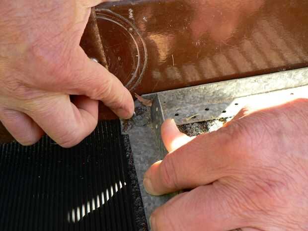 Una vez el frío de la soldadura, usted puede poner las costillas en el lugar. Yo quería ser capaz de levantar la alfombra hacia fuera lo agregado al final de las costillas en el lado del marco como las bisagras y el comienzo de las costillas en la parte inferior para evitar el agua debajo de la alfombra.