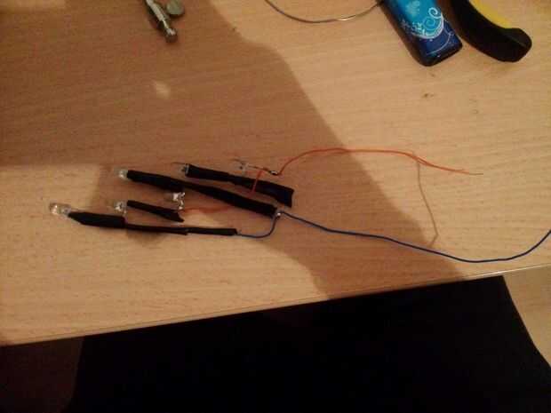Espero que sabes usar un soldador y, la ley de OHMs. Así que si no sabes soldado ir a youtube, hay un montón de videos como a: p. para que saber cómo, se acabo ver lo que hice y puede improvisar. Usé 6 LED, batería de 1 9v algunos cables y resistencias para hacer el "iluminador"